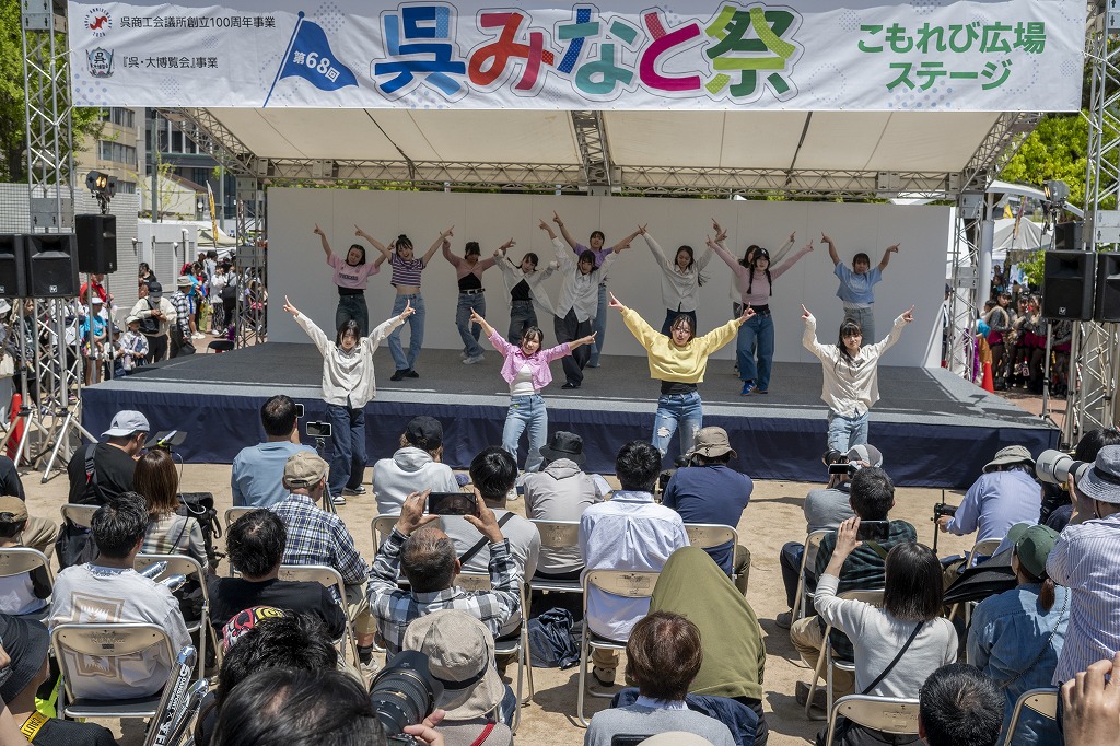 ステージは、市役所駐車場、こもれび広場、呉信用金庫ホールの3か所で、ダンスや演奏などが繰り広げられ、会場一帯は終日にぎわいを見せていた。