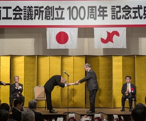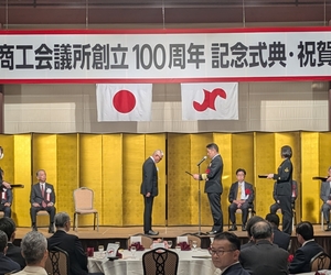 今年1月、本所と同じく100周年を迎えられた静岡県の沼津商工会議所と友好提携を締結しました。これが縁で、本日沼津の紅野会頭にもご臨席賜っており沼津市のPR動画を鑑賞後、紅野会頭から本所へのお祝いの言葉を頂いた。