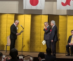 又、平素より地域社会の海上自衛隊に対する理解促進に貢献している本所に対して、海上自衛隊呉地方総監 松本完海将から若本会頭に感謝状が贈られ、会場は大きな拍手に包まれた。